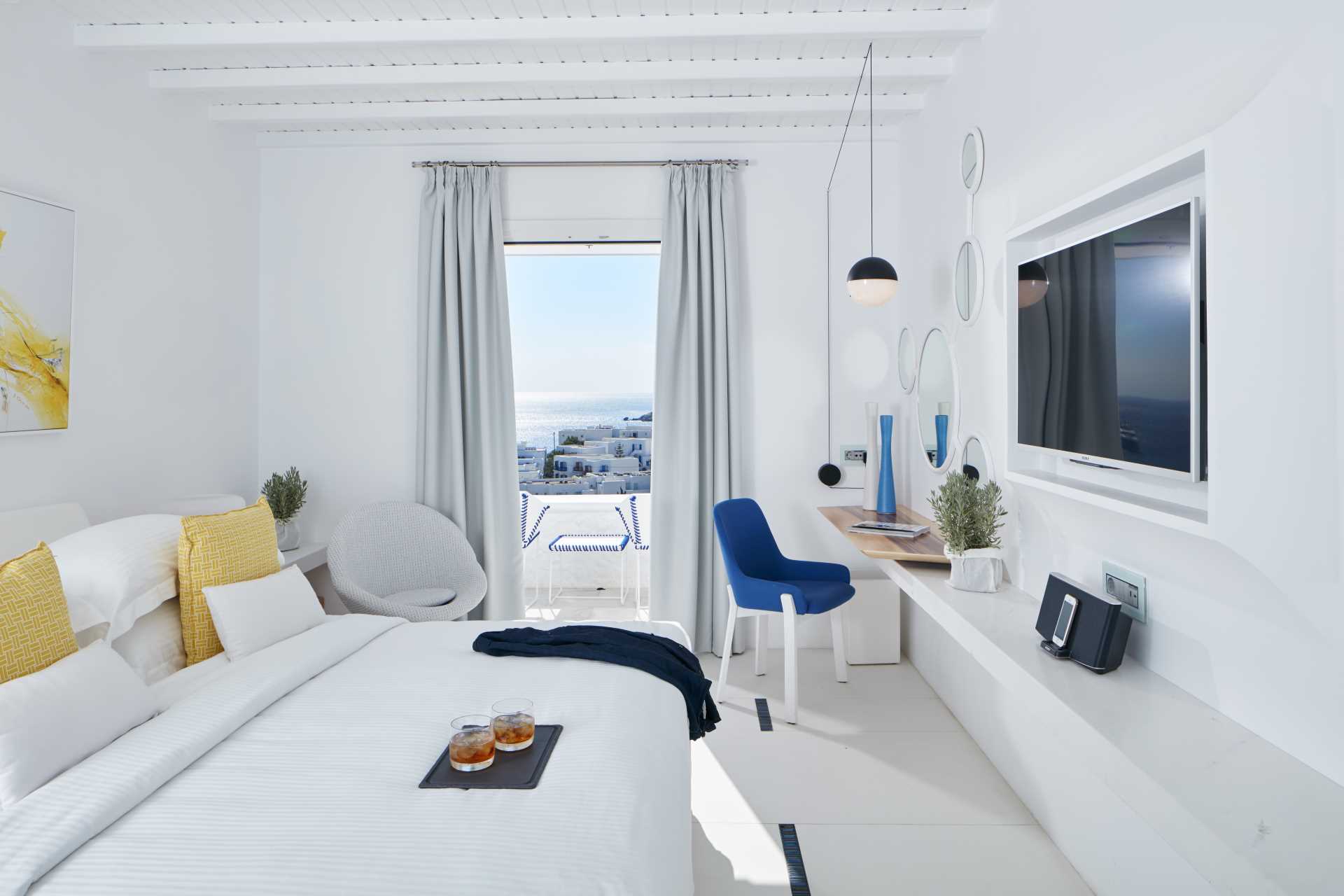 Located at the famous bay of Platis Gialos on Mykonos island, the Myconian Ambassador Hotel & Thalasso Center is a luxury family run resort, and member of the Relais & Chateaux hotels and restaurants of the world. This top rated hotel showcases the Myconian aesthetic and culture in a distinctive way. Whether you are seeking a romantic getaway or a relaxing family vacation, comfort, elegance, and authenticity are evident upon arrive at this luxury Mykonos hotel. The Myconian Ambassador Hotel & Thalasso Center perfectly combines Aegean chic design with art deco furniture to deliver a peaceful environment that introduces the Mykonos traveler to the island's unique ambiance. The hotel's personalized guest services and the well-equipped modern facilities focus on covering every need of the most discerning traveller while in Mykonos. Perfectly balancing intimacy with luxury, the Myconian Ambassador Hotel & Thalasso Center has earned a place among the top choices for luxury accommodation on the island of Mykonos.