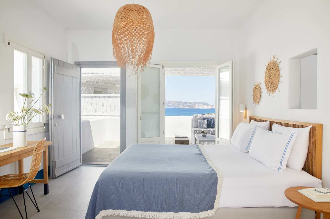 Situated on top of a hill in Pollonia, the luxurious Milos Breeze Boutique Hotel offers astonishing views to the Aegean. Designed with respect to its natural surroundings, this island authentic boutique hotel offers luxury and elegance, while at the same time creating an atmosphere of serenity. All of the rooms of Milos Breeze Boutique hotel have a balcony or a terrace, giving guests the opportunity to enjoy their privacy. The interior design of the rooms follows a minimalistic approach and manages to reflect an essence of the island’s landscape through the combination of white and grey colors. Enjoy the undiscovered beauties of Milos island during a stay at this property while indulging in a world of elegance and luxury!