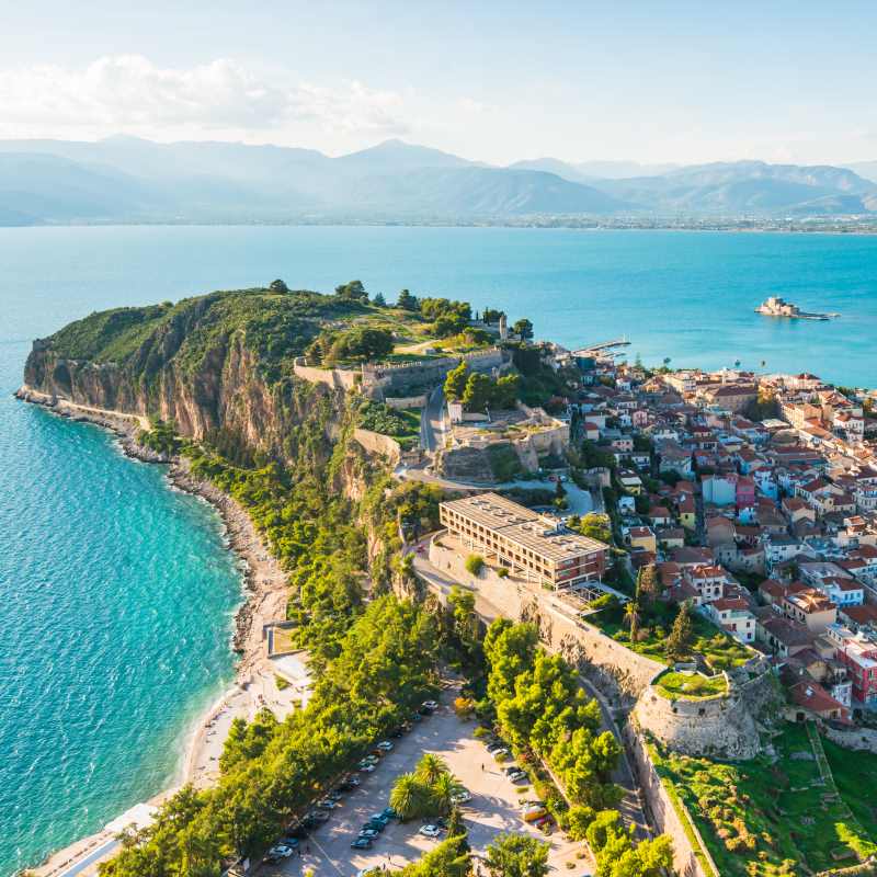 Drive along the beautiful Saronic Gulf and into the Peloponnese to the atmospheric hilltop ruins of ancient Mycenae. Today a UNESCO World Heritage Site, Mycenae was once a major center of Greek civilization and a military stronghold that dominated much of southern Greece. Continue with one of the greatest monuments of Greek Antiquity, the famous Theater of Epidaurus. With a capacity of almost 14,000 spectators, the magnificent theater combines perfect acoustics with elegance and symmetrical proportions. Your journey will then take you towards the eastern Peloponnese to discover Nafplio, one of the most romantic destinations in Greece. The first capital of the newly born Greek state between 1823 and 1834, Nafplio has a combination of medieval and neoclassic characteristics. It is a lively and charming seaside town that will surely enchant you.