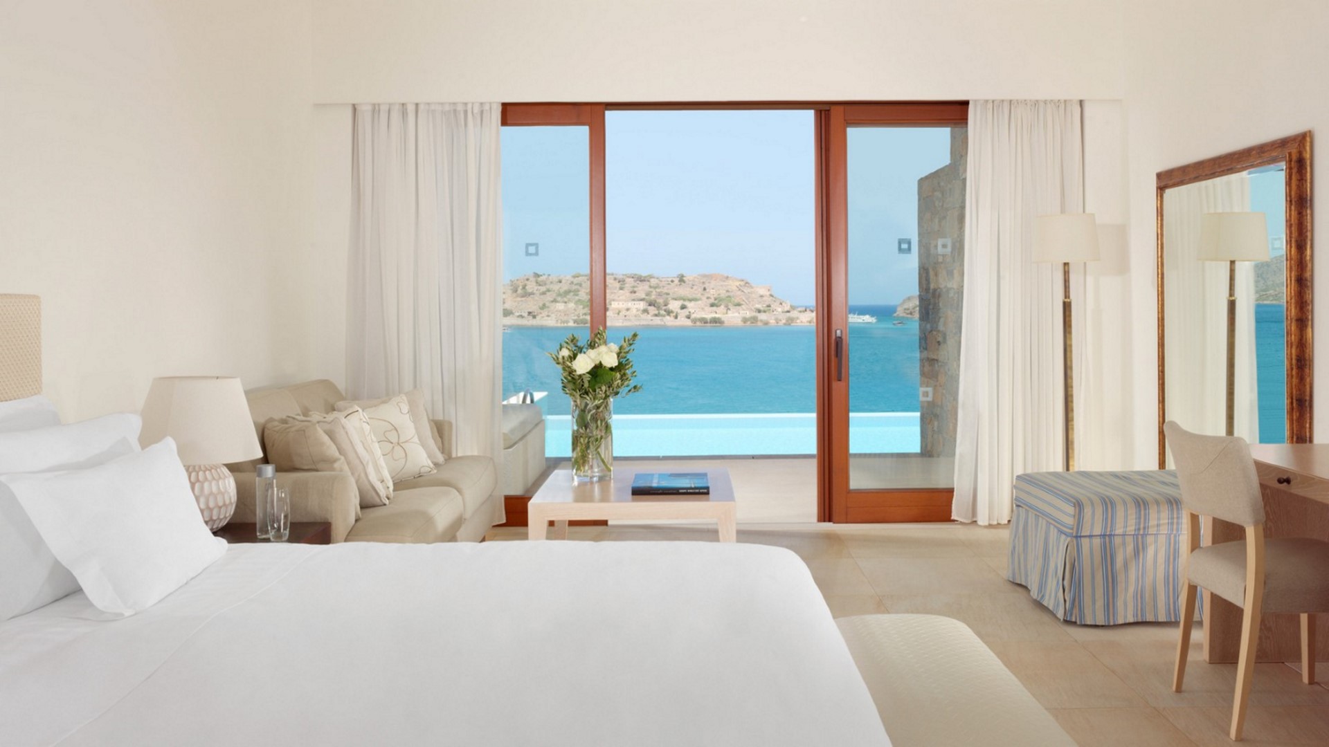 The Blue Palace, a Luxury Collection Resort & Spa, member of Starwood Hotels, is located on the coast of Elounda Greece, opposite the isle of Spinalonga. This luxury resort introduces its guests to the famous Cretan hospitality and the beauties of the island of Crete. This exclusive beach resort elegantly combines luxurious accommodation and award winning cuisine with captivating spa facilities and excellence in guest services. The Blue Palace Resort & Spa consists of various rooms, suites and villas carefully designed to ensure a relaxing and memorable luxurious stay. Guests are provoked to experience all their senses during their stay at the Blue Palace Resort & Spa. Guests experience the Mediterranean chic design of the outdoor and indoor areas; taste excellent Cretan, Greek or international cuisine in one of the restaurants; take in the sea aura at the resort's private beach or while enjoying a water sport; feel the privileges of the customized guest services that transform a travel experience to an ultimate lifetime experience.
